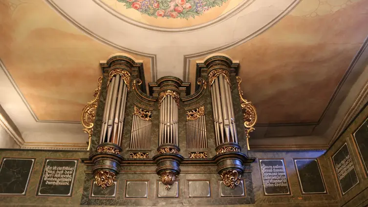 Die Orgel aus dem Jahr 1776 stammt aus der Werkstatt Geib in Saarbrücken. Das Werk verfügt über eine Schleiflade mit mechanischer Traktur. Die letzte umfassende Renovierung der Kirche fand 1921 statt. Die Empore wurde verkürzt, an der Westseite wurde ein Kamin hochgezogen. Für die Neugestaltung der Fenster im Chor und an der Südseite konnte man den renommierten Glas- und Monumentalmaler Otto Linnemann mit Sitz in Frankfurt am Main verpflichten. (Seit 1923 war er außerordentlicher Professor für architektonische Malerei und Farbe in der Architektur an der TH in Darmstadt. Bereits bei der Restaurierung der Dome u.a. in Mainz, Worms und Frankfurt hatte er sich einen Namen gemacht.) Die Chorfenster zeigen die vier Evangelisten, die Fenster an der Südseite zeigen Luther, Christus und Melanchton in Überlebensgröße. Unter dem Ziborium wurde ein Ehrenmal für die Gefallenen des ersten Weltkrieges in Form einer Tomba errichtet.